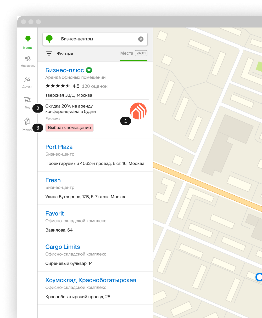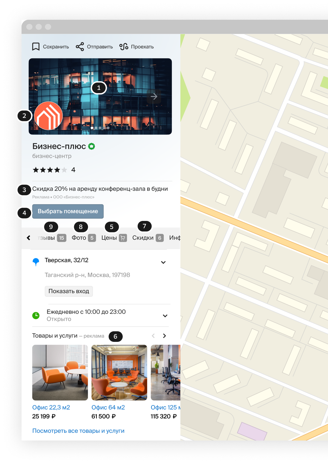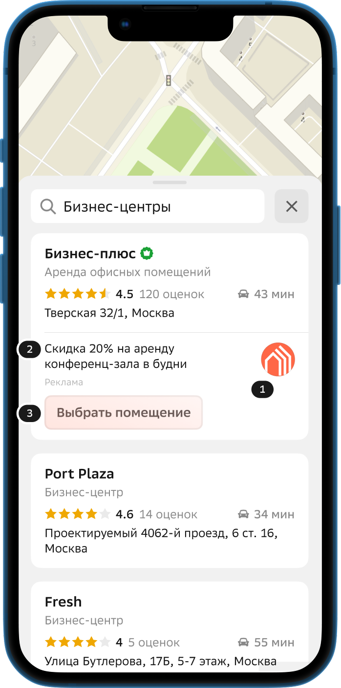 В поисковой выдаче и на карте