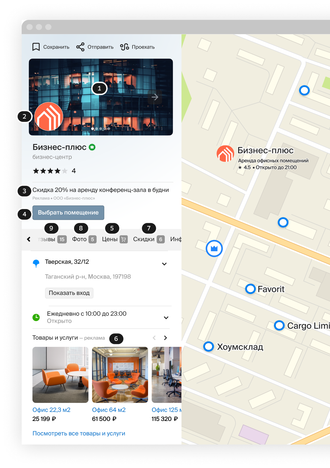 В поисковой выдаче и на карте